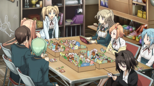 This show is absolutely trippy. Not as much as your Humanity is Declining maybe, but still this episode was just plain weird. That is not to say I didn’t enjoy it, I actually quite did, but the setting is very outlandish and the characters a little off the norm for your normal high school show. My best comparison would have to be this being an alternate reality where the cast of Amagami SS went to the Medaka Box high school. Intrigue deep enough to kill over? School administration with the bureaucracy of some countries? Clubs with the budget of small corporations? Combined with the fact that the MC is literally schizophrenic I don’t think I’d be remiss in thinking this all his fever dream. Craziness aside, the main character has some spirit but is kind of a blank slate like Junichi; though hearing this is based off of an eroge makes that perfect sense.