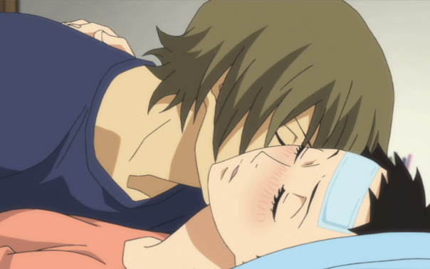 Originally, as this anime showed the relationship developing quickly and naturally, I was wondering what kind of curveballs would have to be thrown to keep the plot dramatic. All of these new developments each episode have never felt too cheap, fainting flu notwithstanding. Once again I have to applaud the portrayal of these people as real, with motives and wants. They are not beyond tricks or forcing hands in order to get what they want. However, I was worried Ryousuke had too much power, and that his corporeality would easily win out. With the introduction of his new powers, and an accidental of old feelings, it feels right that it seems like the ghost has been gaining in the fight. It’s anyone’s game now. Here’s to a good showing by both men in the future.