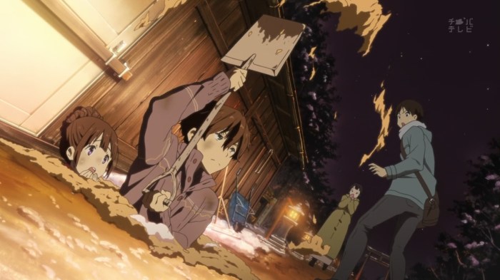 Recap: While visiting the shrine on New Year’s, Houtarou and Chitanda get trapped in a shed.