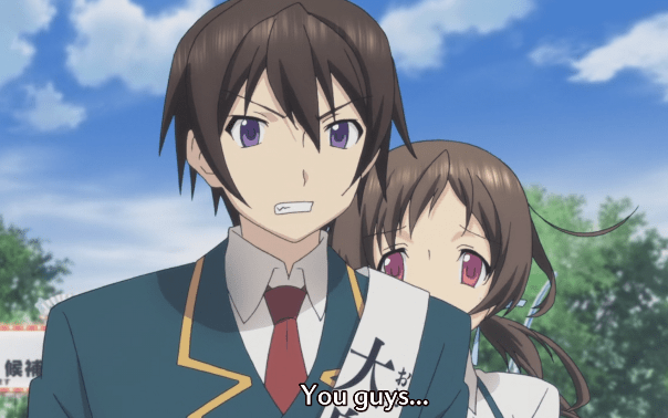I still don’t get this financial aid thing. Since when was elitism such a well accepted thing? What kind of horrible people do they let into this school that this kinda shit happens? I guess you could say this is a consequence of the great degree of autonomy this school is given, and that since kids are kinda douchebags by default, douchebag ideals would come into popularity. Obviously this is just set up to make Yuuki the good guy and to offer some more sympathy for Aomi, not that she really needed it. However, Chisato is completely right. This isn’t the time to make unpopular stances, even if they sound totally obvious to normal people.