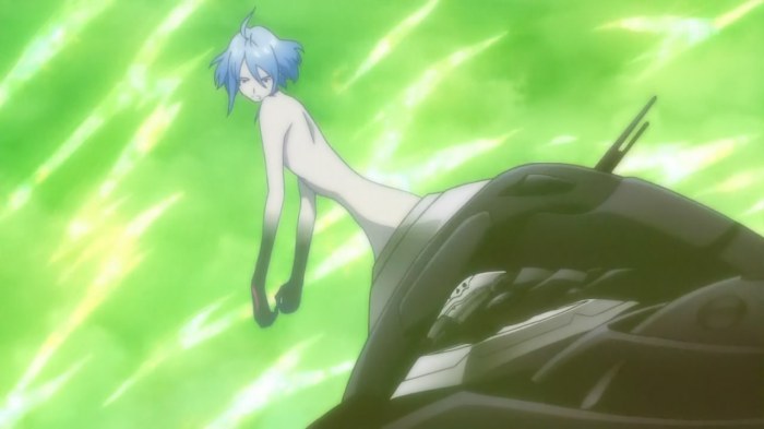 Perhaps the worst example of this yet is the laughable reappearance of Truth. All throughout the series we’ve been teased that the secret that has been lurking under Generation Bleu HQ has actually been the Nirvash Type TheEND from the original series, and it’s finally revealed that is the case. And then Truth (who is still alive, somehow) fuses with it and turns into an amazingly shitty looking lump of metal with his body sticking out of it. What really upsets me about this is not the stupidity of the twist (incredible) or how completely out of left-field it is (totally) or even the end result (hideous and laughable). No it’s the fact that there is literally no reason that it had to be TheEND used for this – it could have been a new IFO, or some sort of magic box, or a jug of Kool-aid for all I care. It’s the most blatant example yet of the show baiting people with nostalgia for the previous series, then casually tossing it aside when it decides it’s come up with something ‘cooler’. It’s patronizing and insulting, and makes me ever more likely to call this show a sham as we enter the home stretch.
