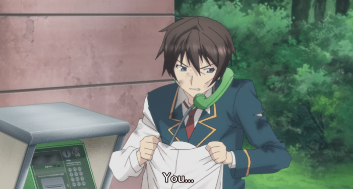 Well, we knew something had to make it difficult. Chisato getting kidnapped seems pretty stupid if you ask me, they could have just kidnapped both of them and made sure they didn’t talk. Either that or just, Idno, tell Yuuki to stay away from the school for four hours? It’s not like they needed to have him run around. Somebody had to have eyes on him otherwise they wouldn’t know what time to call the phone booths.
