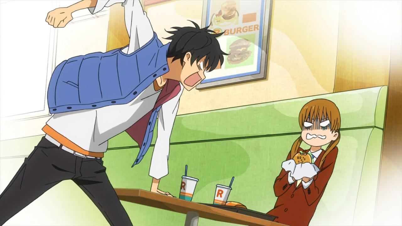 Haru meanwhile is an utterly unexpected delight, less a delinquent than a lost boy unable to interact with anyone on a meaningful level. His quirky, often childish antics help create sympathy where we might expect to feel resentment and create humour out of awkwardness. Yes, his already infamous threatening line is totally unacceptable on any level, but it also seems radically out of character, and for now I’m going to give the benefit of the doubt and chalk it down to crass writing rather than any actual dark edge to the character. And let’s not forget studio Brains’ Base, who bring their trademark spindly, slightly flat look to the show, but also light it up with bright colours and strong animation. Romance shows are always difficult to predict, but this one looks to have the wit, heart and jokes to go the distance.