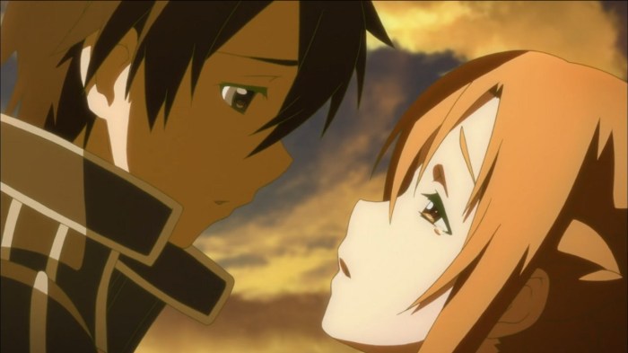 - Asuna magically defies the game’s paralysis to take a lethal blow in Kirito’s stead,
