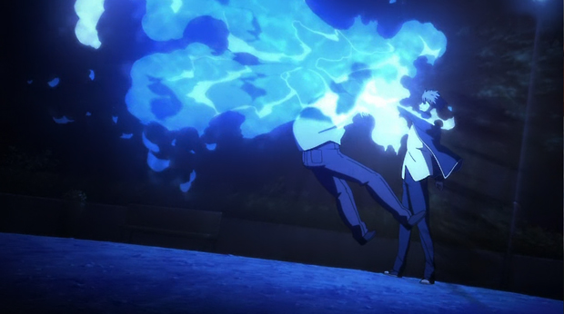 Working with what we got in the first episode though, I just don’t see anything to be excited about. There was a whole lot of general anime stupidity like “let’s transfer the important guy into her class THE NEXT DAY”, “let’s say big dramatic things to look cool (see the whole “do you want to be a vigilante…” line)” or my favorite “let’s run at the guy that just set my friend’s face on fire!”. I could probably go on and on but you get the point. It’s all fairly well executed with decent art, animation and voice acting but nothing that really sticks at the end. Even the supposed cliffhanger the episode leaves us on will obviously fix itself (thanks plot armor!). If I really need a Shonen action fix this season (and I probably don’t), I’d prefer to take a chance on Blast of Tempest’s more risky, over the top style over this.