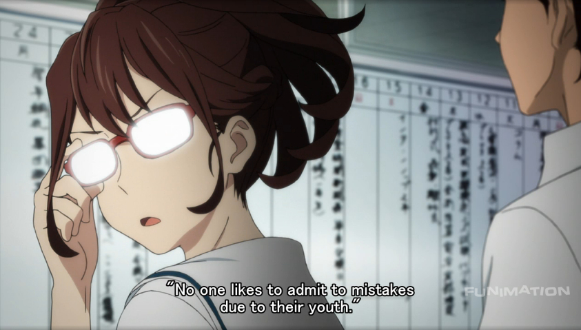 The opening was great, I love how the lines the high schoolers were saying sounded so serious, but were said with a slight hesitance that showed their inexperience, and in a way the ridiculousness of a bunch of high schoolers making a giant robot. While the plot is hinting at some kind of story greater than just building a giant robot, I’m content at the moment just to learn the story of how they are going to manage to put the thing together.