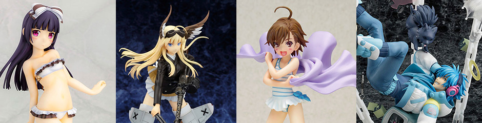 Jel: These would probably look great as a set if you can get your hands on Mikoto, the matching swimsuits is a nice touch. Not sure anyone really cares enough about them individually to own them otherwise though. Misaka Imouto has the cool visor of course, but I think they should have taken it a step further and given her a giant water gun, that would ALMOST make me consider a purchase. Last Order looks pretty great actually as far as the choice of pose but do you really want a ten year old in a swimsuit on your shelf?