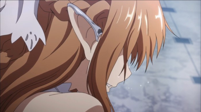 There’s also one of my lingering nitpicky concerns with the fabric of the fiction to address – Leafa mentions that ALO is a year old, which means that people were playing this game at the same time SAO still players permanently trapped in a coma. Even if you take into account the possibility that nobody knew the servers were cloned from SAO, this still seems a remarkably stupid thing to do, submitting yourself to technology which was actively proved to be potentially lethal. Yes, I know the AmuSphere is meant to be more secure than the NerveGear, but it’s still a game which takes over your higher brain functions. I’d like to meet the marketing guy who though ‘Hey, all those people in comas will be the perfect promotion for our new game based on basically the same idea!’ (Iro’s Note: literally the same code) Hardly a shattering blow to the show’s credibility but still one that eats away at the already strained premise.