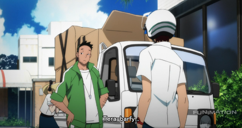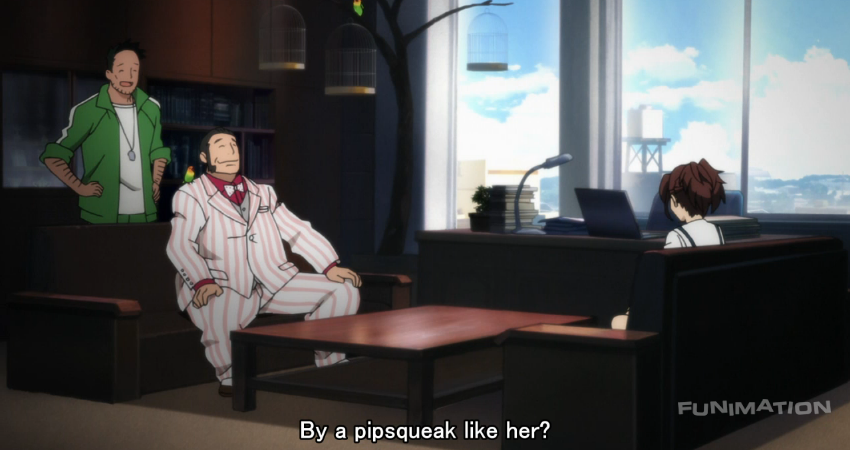 We meet a new character in form of Frau Kojiro, who revealed herself at the end of last week’s episode. The eponymous creator of Kill Ballad, the game Kaito can’t pull himself away from, she seems to be the physical manifestation of 2ch and 4chan combined, speaking almost solely in internet speak. As a result, she’s immensely antisocial, which only has me worried she will be yet another apathetic character who has no interest in Akiho’s ambitions. I seriously hope that the rest of the cast that are introduced are more passionate and hot blooded, as all young men and women should be, because it’s gonna get harder and harder for Akiho to carry this show if the rest of the cast is so distinctly negative.