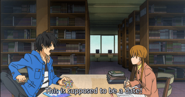 Recap: Class Rep Oshima is quickly integrated into the plot as Haru confronts her after her advice fails to win him a class rep nomination of his own. At the same time, Shizuku’s test scores are dropping, which makes her question where her real priorities should lie. Her feelings culminate into the worst date scene in history.