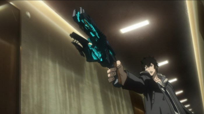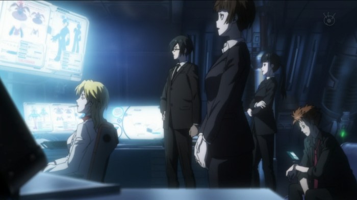 The Internet killer bit is finished up with this episode, in a fairly predictable manner – that is, they shoot the guy and he explodes into gore. And they do while spouting philosophy quotes throughout the entire episode, in typical Urobuchi fashion. Of course, that isn’t the main point of interest this time. At the end of the episode, we learn more about Kogami, with Inspector Ginoza dropping the bomb that Kogami himself used to be an Inspector. I had been wondering for a while yet why Ginoza seemingly had more tolerance for Kogami than any of the other Enforcers, and this neatly ties up that question. As for learning what exactly is up with our white-haired-pretty-boy villain, it seems we’re still a while off from that yet, being not even halfway through the season.