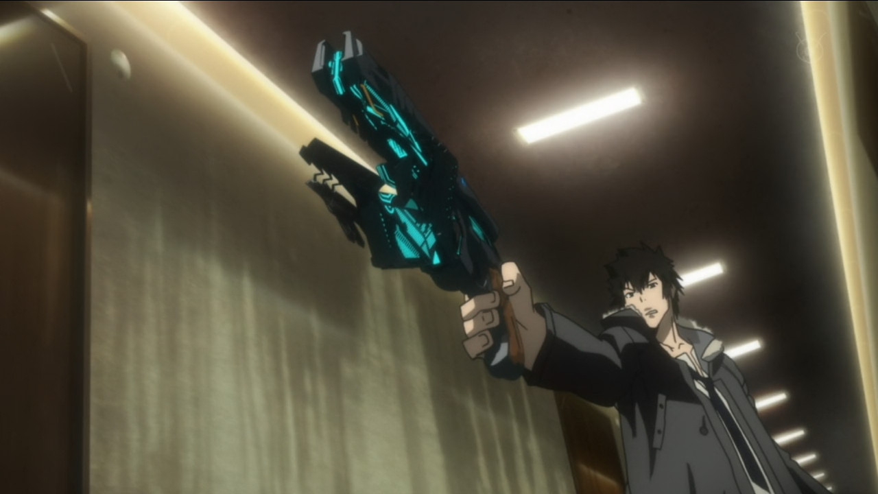 In the end, the criminal is caught, his benefactors still mysteriously being mysterious in the background, and we find out a little more about Kogami and Ginoza’s past. It does seem odd that as police, they would resort to murdering the criminal before taking him in for interrogation, but I guess that’s just how things roll in the future.