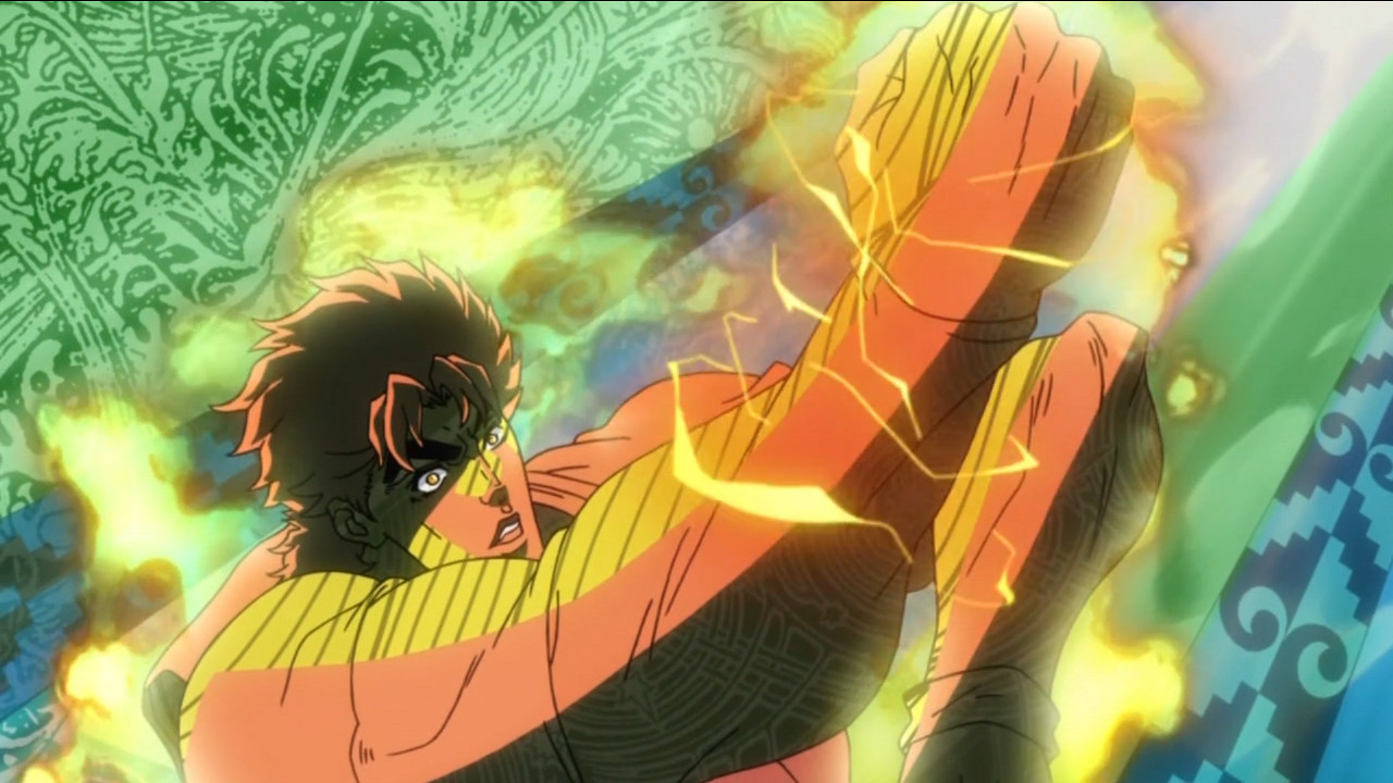 Look, I really try to come up with good stuff to say here, I really do. But there never is much to say about Jojo. Crazy poses, crazy attacks, Araki making up more bullshit, and manly guys doing manly things – it’s pretty much going to be the same every week.