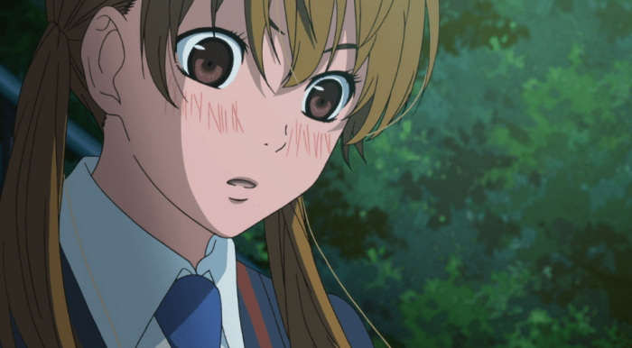 Recap: Haru seems to finally have a grip on his feelings, only to have Shizuku drift away from him in favor of her studies. Being the socially deficient guy he is, he starts creeping on her, driving them further apart. However, after another chat on the long staircase home, a little blood rushes to her cheeks once again.