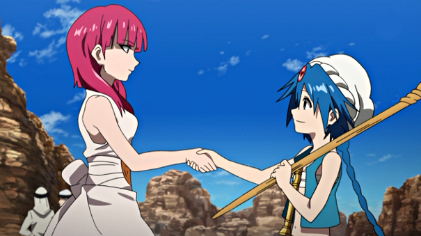 In case you hadn’t already worked it out, I thought this episode was an absolute masterpiece, and the best we’ve seen yet from Magi. The show has shown exceptional quality in the way it’s balanced the magical and realistic aspects of its premise and of the darker (seriously, he’s going to feed that girl to hyenas!) and lighter elements that make it up, while never forgetting to keep the focus on characters we’re rapidly growing to love. They were already high, but after this my expectations are through the roof, and as we meet the legendary Sinbad next week I’m counting on some swashbuckling adventure to be had.