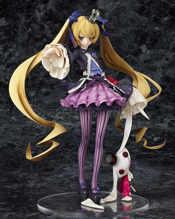 Aqua: She has arrived! My favourite figure from WonFes is now available for pre-order, so what are you still waiting fo-Oh, she’s 7000 yen. Well, anyways, just look at her! Without even having to give two craps about the game she’s from (don’t, it’s eye-meltingly appalling), hacker stands tremendously on her own. I love Shirow Miwa’s art style, and her design looks equally as stunning as it did months ago. Hacker’s design finds itself drop-dead in the center between Emily The Strange, Tim Burton and Hajime Ueda’s works for Bakemonogatari, and makes for an absolutely jaw-dropping design that doesn’t even yell “huge nerd” at first look. The details in the frills, the haughty pose, the matte finish, the terrific pigtails, the plateau shoes, the stuffed toy, the neatly detailed shiny crown… seriously, do I need to continue?