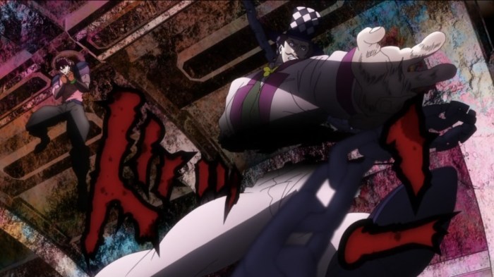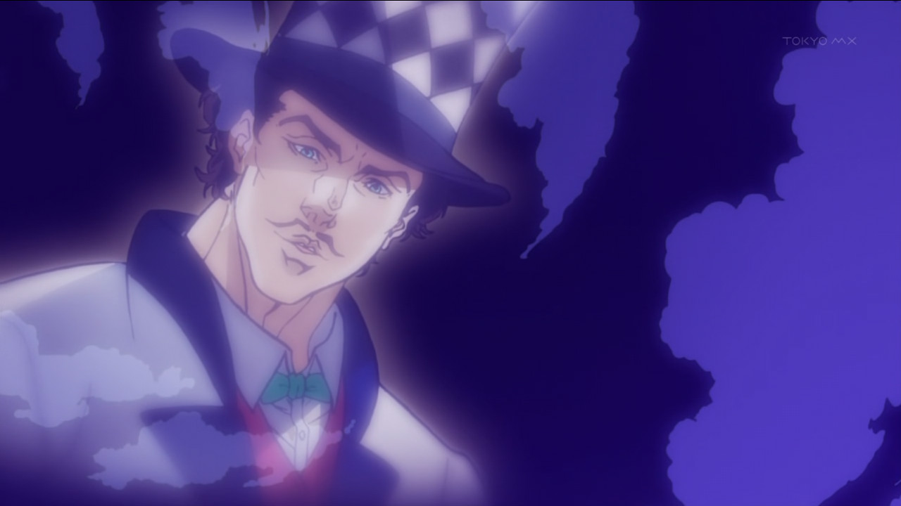 One of the problems when you’re making a show that’s as unashamedly dumb as JoJo is is that it becomes very difficult for the audience to take anything at all seriously, even when you want to. This factor, and the absurdly heavy foreshadowing, mean that Zeppeli’s death this episode doesn’t have quite the punch one would hope. It’s to the show’s credit however, that it has any impact at all – they stick to their guns and go big and over the top, and while I’m not exactly wracked with grief it’s still a shame to see him go. Heavy handed foreshadowing returns however with the revelation that he has a family – no doubt we’ll be seeing them when the next arc rolls around.