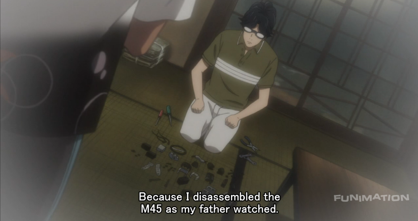 Thankfully, as always, Akiho saves the episode. Trying to get Jun more used to robots she lends her the entire GUNVARREL series, which honestly looks pretty sweet. I’m glad to see Production I.G. spending money where it should. Later, when it seems as if the spark of Subaru’s will had all but been put out, Aki is the one going to his house and giving him the inspiration to not give up. It was also fun watching her manage buying the robot parts, with Doc’s flashbacks showing us that hot blooded spirit is all part of the Senomiya bloodline. I’ve also started taking a liking to the sleazy owner of Space Candy. How he possibly thinks the expense for these giant robot parts will be made up with gained customers is something I can’t really imagine, but he did have one of the more sensible ideas to date. Since Jun is the smallest of the group, you’d think it would make the most sense to have her pilot it to save space. Unless even GUNVARREL is going to be piloted like he’s playing KILL-BALLAD I’m not even sure why it has to be Kai doing it in the first place.