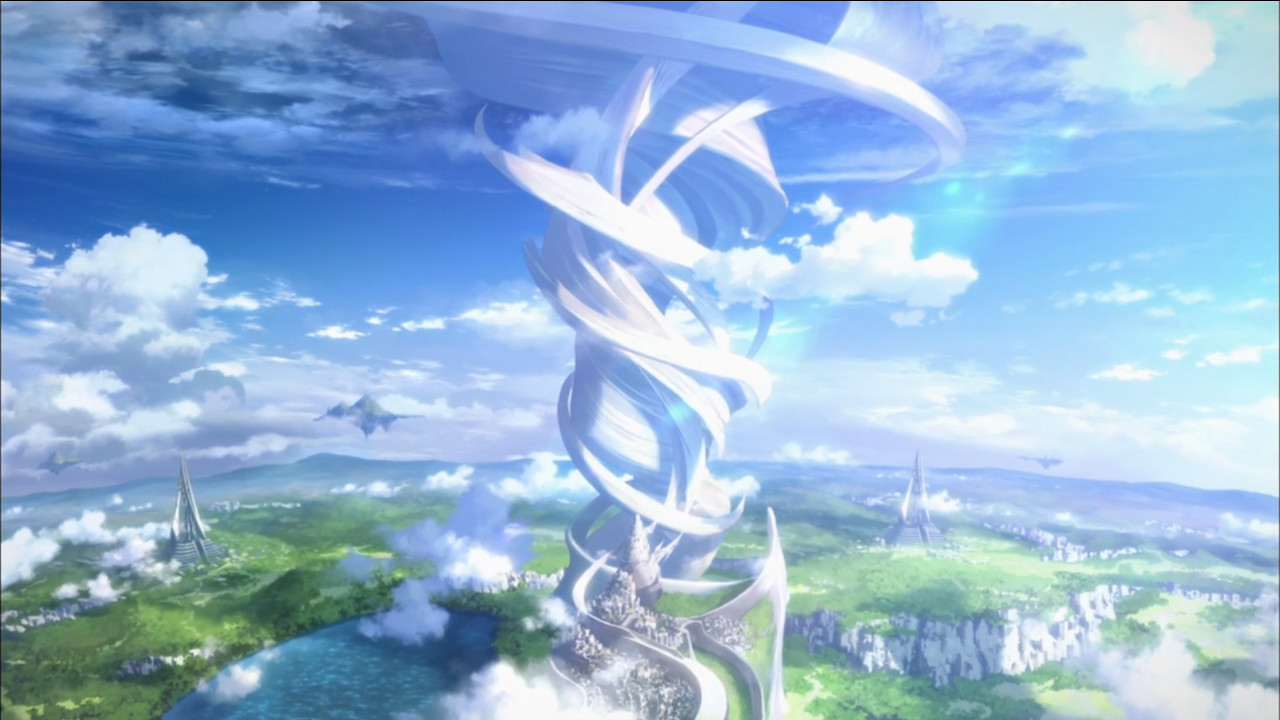 The episode starts incredibly strongly with some gorgeous scenery porn of Arun. The show has always been a looker but this is the first time in my opinion ALO has produced anything as striking as the floating monolith. I love the way the city seems nestled in the crook of the tree, and now we’re much closer it’s possible to appreciate the flowing, elegant design of both Arun and the tree itself, as well as the vast scale of the latter.