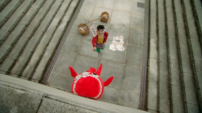 In fact, despite some lip service this is barely a Shunpei episode at all. He gets a funny Manju selling montage and gets kidnapped damsel-in-distress style at the end, but otherwise he’s relatively unimportant. The sidelining of the supporting cast is a nagging issue with Wizard, and one which it needs to address quickly. With Rider #2 getting closer (all past shows suggest he’ll show up somewhere before episode 20) and likely to take the lion’s share of character time when he does, we really need a bit more from Rinko and Koyomi, both of whom are relegated to super brief cameos in this episode. The best Rider shows work because we care just as much about the people out of costume as the ones punching monsters – think of Den-O‘s bickering team or OOO‘s strong central partnership. At the moment there’s nothing on that level in Wizard, and it’s something the show needs to be proactive about going forward.