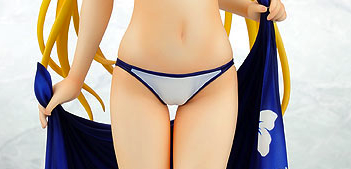 Zigg: This is a much, much better effort than Gift’s equivalent Nanoha, and actually a rather cute interpretation of Fate. I think the colour scheme was a good choice – the blue and white is worlds away from Fate’s traditional dark palette and when combined with the wrap makes for a breezy, casual look. As far as swimsuit figures go it’s a good ‘un, but all the usual caveats about this sort of thing apply, as well as the pretty hefty price tag.