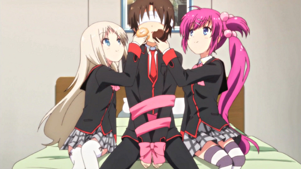 When Riki asks them what the the something “terrible” is, the two girls cannot remember and give up defeated. Shortly after this happens Riki receives an emergency text from Rin asking him to come to her room and help her. Riki being the unsuspecting friend that he is, risks limb and life to enter the girls dorm where the entire female cast is waiting for him to join their “terrible”.. sleep over party?