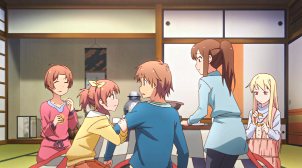 Recap: Sorata returns home for the new year. Since they have no where else to go he brings Mashiro, Nanami and Misaki with him. Antics ensue as Sorata’s family picks on him for bringing home a harem.