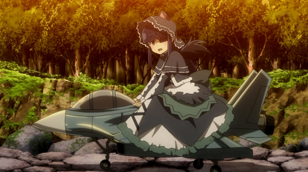 Lifesong’s Thoughts: Boobs and stuff, this anime is harder to write about than I expect it to be when I told Timmy I would fill in while for him this week. I am basically just here to tell you that Timmy will be back next week and that I just watched a loli drop a fighter jet out of her skirt and ride away on it.