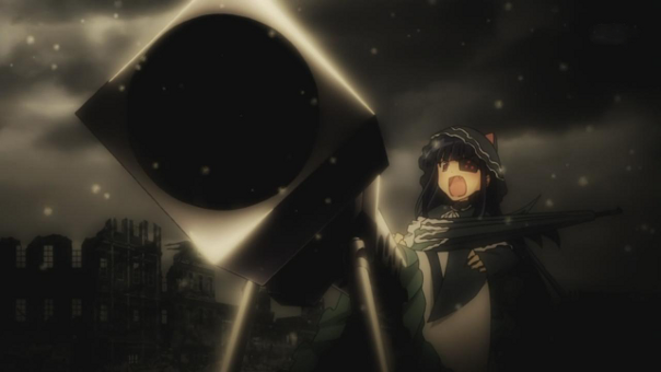 Midway though the episode the Serpent girls make their move and Haruka uses her puppets to separate Kiriya from the girls and then the girls from each other were there are enclosed in battle spheres to each face their rival. Pretty much the rest of the episode is them all duking it out with each other with Asuka’s and Yagyu’s fights being the most prominent. Askua, betrayed by the fact she thought Homura was a nice person and a potential friend, ends up shedding her clothes and going all out from the get go. While she manages to separate Homura from her single sword, she still has the other five to contend with. Meanwhile Yagyu on the other hand spends most of her time outright ignoring her foe as she searches for Hibari. Only when she realises that they are in separate battle spheres does she turn and fight. At this point her opponent, Mirai drops what looks to be an anti tank rifle out of her skirt, which is totally freaking awesome.