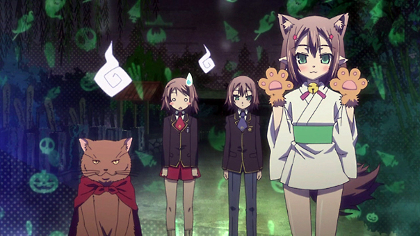 One of the first things you notice about Baka & Test is the incredibly bold and colorful art direction. The animation and character designs themselves are somewhat pedestrian, but the world they live in is packed tight with bright pastels, halftone patterns and flashy typography. Director Shin Onuma orchestrates the madness with quick cuts, well timed stills, and odd color choices that give Baka & Test a very unique look. It can be a little overwhelming once the action really gets going, but a big plus for the series overall.
