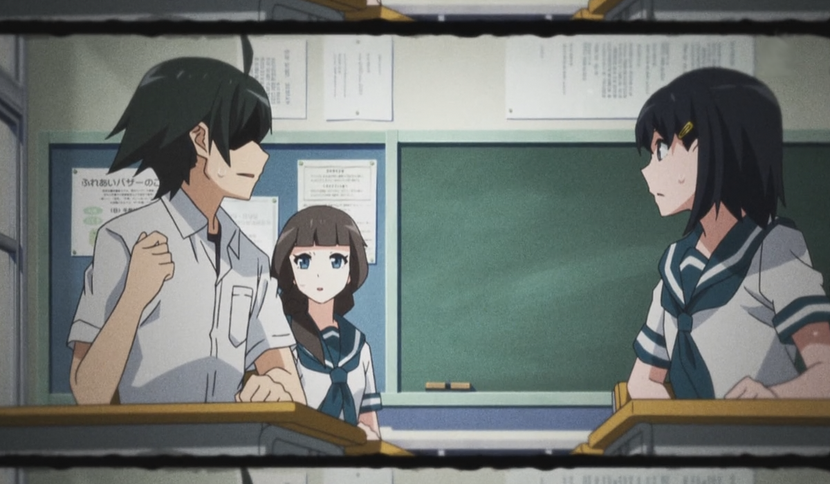 This felt like so many bits and pieces of other shows I’ve seen mixed up into a new, vaguely familiar setup. Judging by the incredibly self aware title, I’m sure carting out an overused setting and character types is all intentional. But where do you draw the line between observation and parody as opposed to straight up plagiarism? Once Youth Romantic Comedy blah blah blah gets its pathetic loner lead in the room with two stereotypical polar opposite heroines, it doesn’t do anything with it, at least not in this episode. Basically the writers are saying “hey we’re smart enough to know how these shows work” but then do nothing to make it better.
