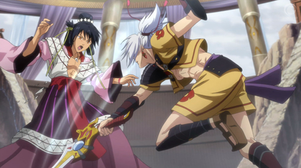 It also helps Arata has strong production values to back up the plot. I really love the vaguely Chinese aesthetic of Amawakuni, with its appropriately outlandish character and weapon designs. It’s not going to challenge Gargantia or Attack On Titan (or even The Devil Is A Part Timer oddly enough) as far as best animation quality this season, but it’s not bad to look at either. Really my only concern going forward is whether Arata will stick its solid storytelling and unique setup, or if it will fall into predictable shonen battle show trappings. With the conveniently numbered twelve Shinshou established as the enemy, I could totally see it going that route. If Arata can keep up what they have going in this first episode though, it could be really good. I’ll try and keep an eye on it as the season goes on.