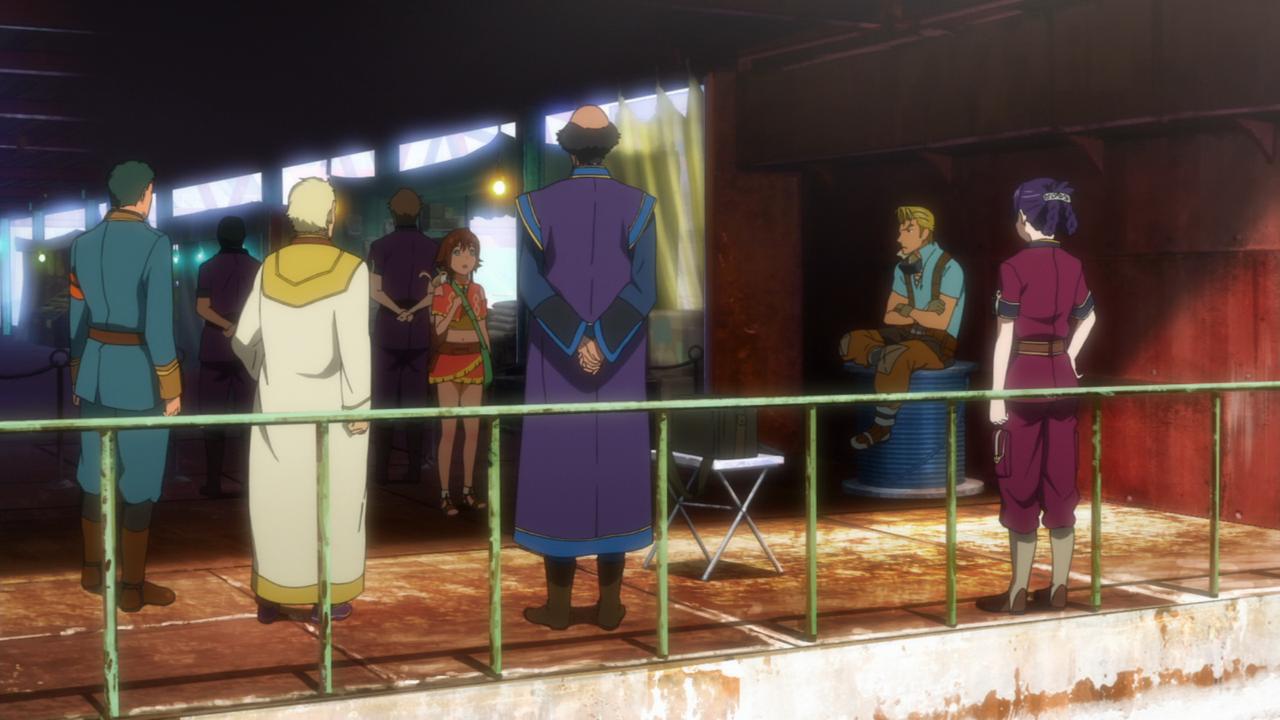 Gargantia is apparently one of many floating cities on Earth, forming some sort of fleet for an unknown purpose. Ledo drops the knowledge that something caused Earth to freeze over in the past, which is presumably why the Alliance ditched it for their big spaceship to begin with. Amy refers to this story as a legend when talking to her brother, which is maybe a little heavy-handed but the conversation does its job.