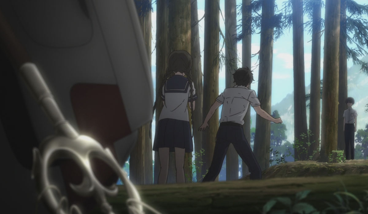 It might be a large part of why I’m not enjoying this supernatural story is that we get no explanation as to why Izumiko has the powers she does. I was okay when it was just some kind of strange technomancy, but now they’re implying it’s an all-powerful kind of power that can even materialize gods. Why does she get this power? Why is it important to protect her as this vessel? Wamiya does a decent job at Yandere and showing what kind of powers a released spirit could have, but at the same time it opened up its own questions. If he was just the god of the mountain, how does he conjure up thunderstorms? How does he turn into a crow? The kind of secrecy put about comes across much more annoying than intriguing.