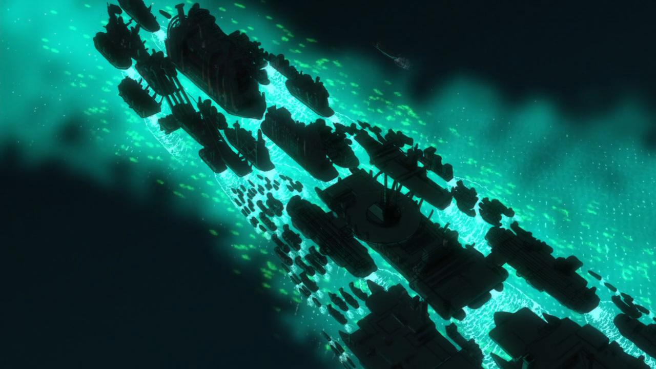 In addition, having the fleet captain suffer from a sudden heart attack right before making an immensely important decision is quite possibly one of the most contrived situations I’ve ever seen. It’s as if the writers needed to add drama, but realize that the structure of the very universe they’ve written wouldn’t allow it, so they just resorted to whatever tribulation they could pull out of their ass at the 11th hour. Seeing as the preview for the next episode flat out shows some sort of exodus, I can only assume things do not go well for the Gargantia. Here’s hoping the next few episodes go about it in a slightly less ham-fisted way than this episode.