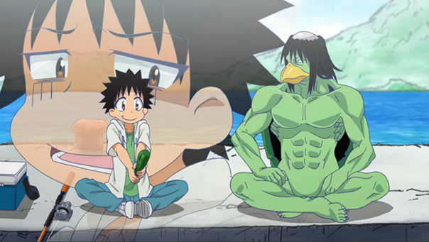 As always though, the madness stayed grounded with Takurou and Muromi’s weird but sweet relationship. His reactions to Muromi’s attempts to be sexy were pretty amusing – we often see mermaids romanticized as these beautiful, alluring creatures but if you REALLY think about it, having any kind of physical relationship with one would just be cold and scaly. That doesn’t mean the two can’t be close though, and I thought super manly Kappa dude’s begrudging, big brother like acceptance of Takurou was a sweet moment. Overall it was another week, another great episode of Muromi-san.