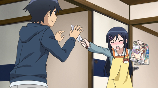 Jel’s Thoughts: And with this episode, Oreimo’s descent into pure wish fulfillment is complete. It’s one thing to have a bunch of girls fighting for the main character’s affection, that’s the core principal of harem anime. It’s another to be fighting over who gets to do his household chores. I’m going to save my more vitriolic ranting about that for after the show wraps up, for now I’m just going to talk about what happened this week. I found last week’s Girl by Girl format convenient for organizing my thoughts so I’m going to give that another try, but before that a quick programming note: It appears there will be one more episode next week to end the TV broadcast, and then the final 3 part conclusion will air August 17th. You can check out the details over at Crunchyroll. As for coverage here at the Glorio Blog, we will save our Final Impressions of the series for after the finale in August. With that out of the way, let’s finish cleaning this mess of an episode up: