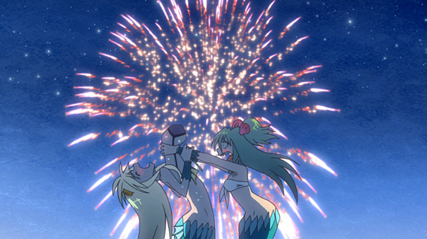 Jel’s Thoughts: I actually had a passing thought last week that the final episode of Aiura wouldn’t have any dialogue and just show off the staff’s technical skills. And look, that’s what happened! OK there were a few spoken lines, but it was really about lovingly animating and directing each little vignette as the girls enjoyed their Summer. It made the ending really beautiful without getting too serious or dramatic, particularly the parting shot of Yukon as she looks off into the stars.