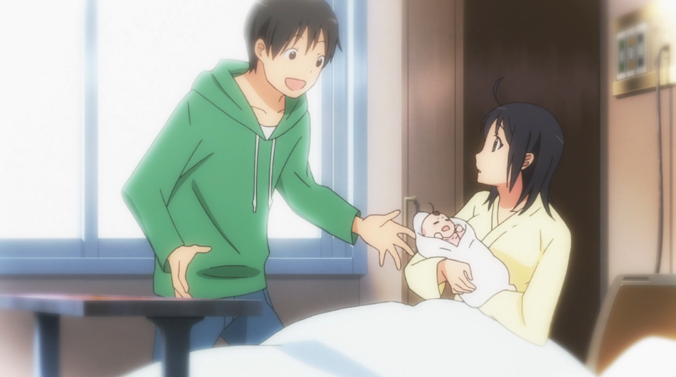 Nevertheless, Servant x Service initially starts off rather slow, with an over-reliance on the sort of observational Japanese Humour™ the appeal of which is entirely behind me. Hey, Miyoshi is struggling with a rambling old lady! In case you didn’t get the joke already, let’s explain how she’s struggling with a rambling old lady! Funny, right? Admittedly, smoothly kicking off a gag-based comedy with characters that are still entirely blank slates to the audience is a challenging and ungrateful task, but most of Servant x Service‘s initial attempts ring hollow. It is not until the second half that the show starts establishing its characters and their defining trait(s), firing off some decent jokes that not only managed to make me chuckle, but came across as quite educational as well. Its clever use of its setting is eventually what lifts Servant x Service out of the festering pit of mediocrity that is anime comedies, but it remains to be seen if it can fight off the dreaded drone for as long as Wagnaria!! managed to. At the very least, we now have been treated to an episode of an anime comedy that actually dared to be about something.