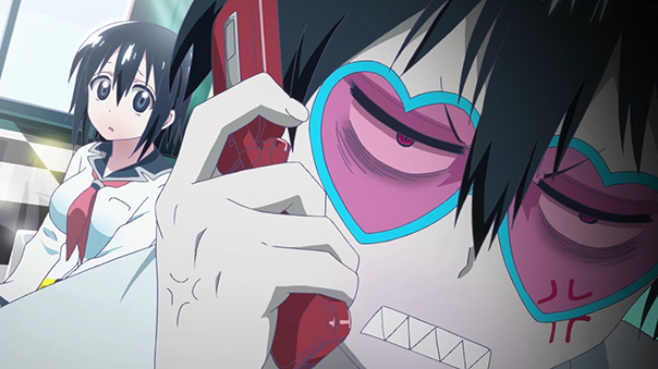Blood Lad has a lot of good things going for it. I love confident main characters, and while Staz is an otaku he wears his strengths and weaknesses on his sleeve. The premise and sense of humor is a perfect setup for a dumb comedy with heart, which is pretty much my favorite thing. There’s even a bit of a black edge to it, particularly the bits with Staz casually walking around with Fuyumi’s skull, bearing the same confused airheaded expression as its former owner. Bonus points too for the heavily stylized manga look. The scratchy lines, visible onomatopoeia, and appropriately bright but decaying color palette do a perfect job of masking what appears to be a limited budget.