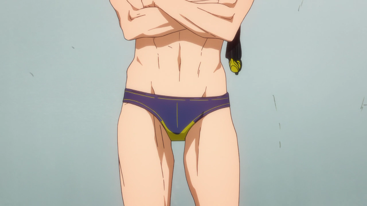 Maybe I’m crazy for thinking this, but if you are gonna go ahead and animate somebody in a speedo, at least act like they have genitalia instead of just drawing an anime-fied Ken doll. There is no bulge whatsoever, and he hadn’t even gotten in the pool yet!