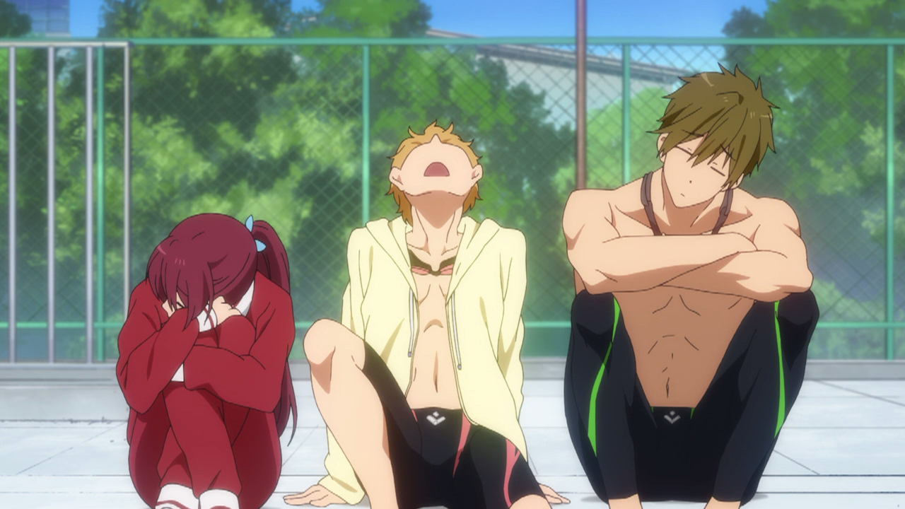 Despite Kyoto Animation’s claims to fame still lurking behind every corner, they actually managed to make an episode in which the characters do what they are supposed to be doing for once. For an entire episode, we get to watch the swimbros, well, actually swimming. And talking about swimming. And making jokes about swimming. Okay, maybe the focus is on swimming just a bit too much this week. You could argue the quick jargon explaining session at the beginning served little to no purpose. After all, is there anyone watching this show who doesn’t know the difference between breaststroke and front crawl? I would prefer it if they explained where all the muscles Gou likes to fawn over are located. Or is that just me?