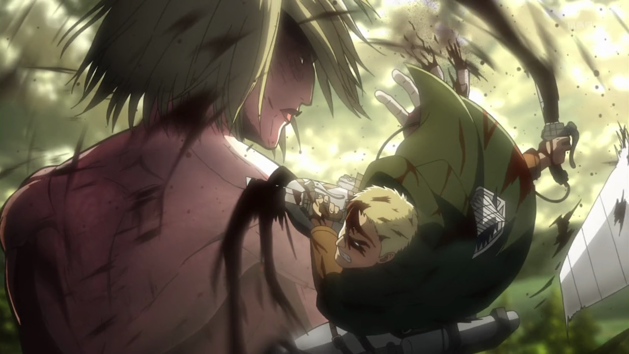 Recap: The Recon Corps run into the Female Titan. Armin, Jean, and Reiner must do everything they can to delay it long enough for the rest of the expedition to retreat.