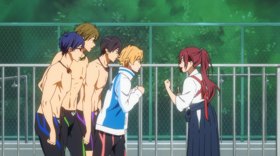 Going back to liberties, I wasn’t just talking about the story, either. While KyoAni took a week break after the last episode, it certainly doesn’t seem like it was to give time to touch up this one. It isn’t the worst thing I’ve ever seen (trust me, I reviewed SNAFU), but the animation was definitely not up to snuff compared to the quality we’ve come to expect. There were also many pregnant pauses on stills. They quickly broke up the flow of the episode and didn’t seem to serve any purpose other than to save time and money. For a show like Free!, the main draw is that KyoAni quality. If it doesn’t even have that, it’s going to loose my attention pretty quickly.