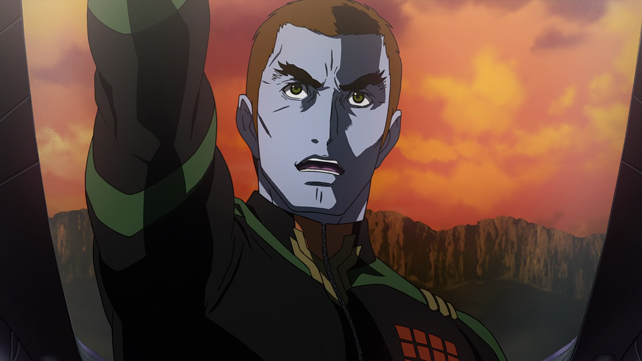 In addition, this episode featured what is perhaps one of my favorite moments in the show. While inspecting his new troops, Domel meets four volunteer troops from a recently conquered planet. Second-class citizens, none of Domel’s crew trusts them or the mysterious mission they’ve been entrusted with. However, a strong showing by singing the Gamilan anthem instantly wins over Domel and crew, leading to everyone present taking part. Factor in that the troops are part of the 442nd squad, and you realize that this moment is a perfect example of world building with relevant real-life analogies. While using the same name as the most decorated infantry division in US military history might be a little heavy handed, the fact that a Japanese animation studio would reference the famously all-Japanese-American division is wonderful to behold. It’s a great example to show us that the Gamilans are just as nuanced and unique as humanity is, comprised of heroes, villains, and everything in between. They might be our enemies, but I’ll be damned if the Gamilans aren’t some of the best villains I’ve seen in a long time.