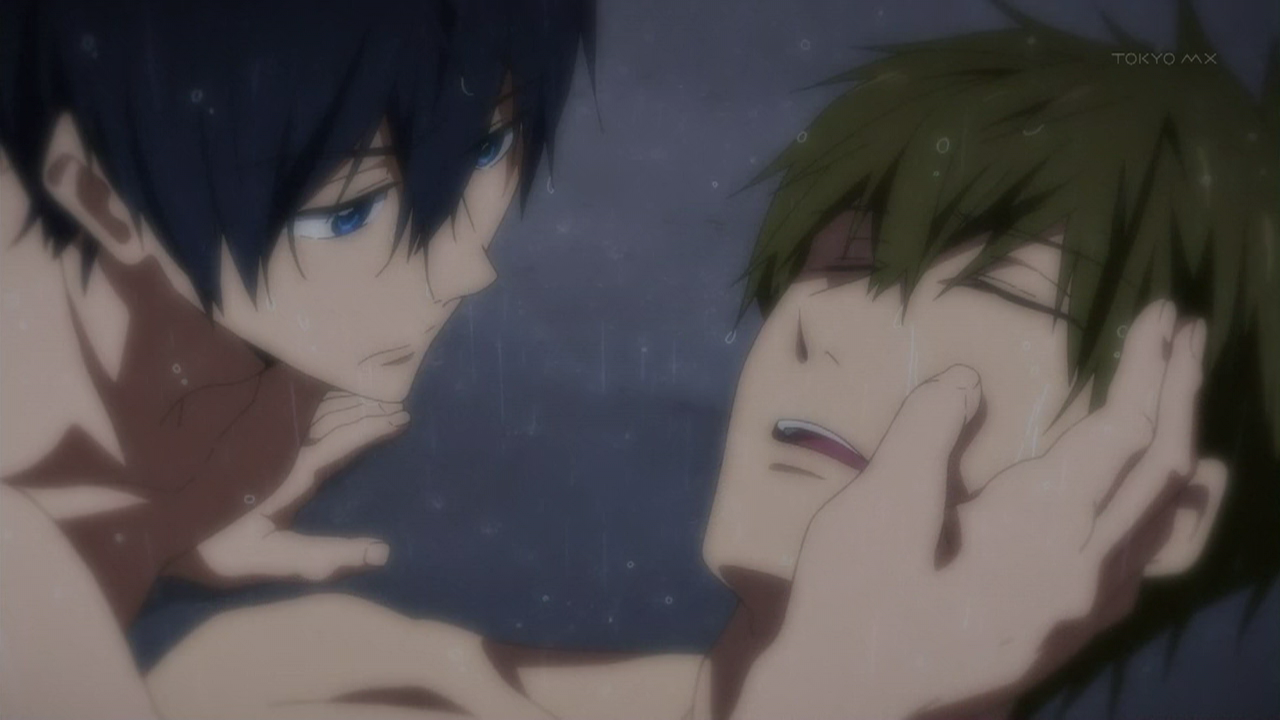 Recap: Makoto is struck by a sudden anxiety attack while trying to save Rei from drowning. Haruka and Nagisa jump into the ocean to help, but the heavy weather causes them to lose track of one another.