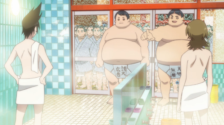 Recap: The boys force the Professor to go take a bath. When most anime would use this kind of set-up for sexy shenanigans, it’s played straight until Kinkaku and Ginkaku come in to deal a heavy truth to the Shimogamo boys.