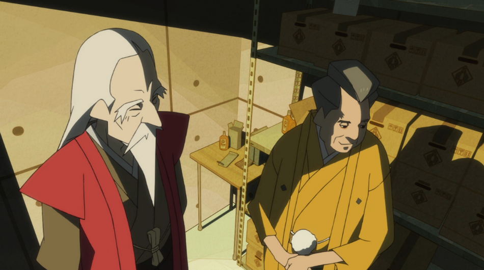This show has always been very artsy, and that’s why I’m really disappointed with the cheap CG effect used for Ginkaku’s transformation as they were gloating to Yasaburo. It just looked incredibly off compared to the beautifully detailed background with its rich pastels. The character animation also took a real hit. Whenever someone was more than 10 feet off of the camera they started to look incredibly deformed. I can forgive this for the army of nobodies Soun hires, as it fits with their theme, but when Benten and Yasaburo were talking, they were the focal points of the scene, you can’t have their art getting lazy right in the middle of it.