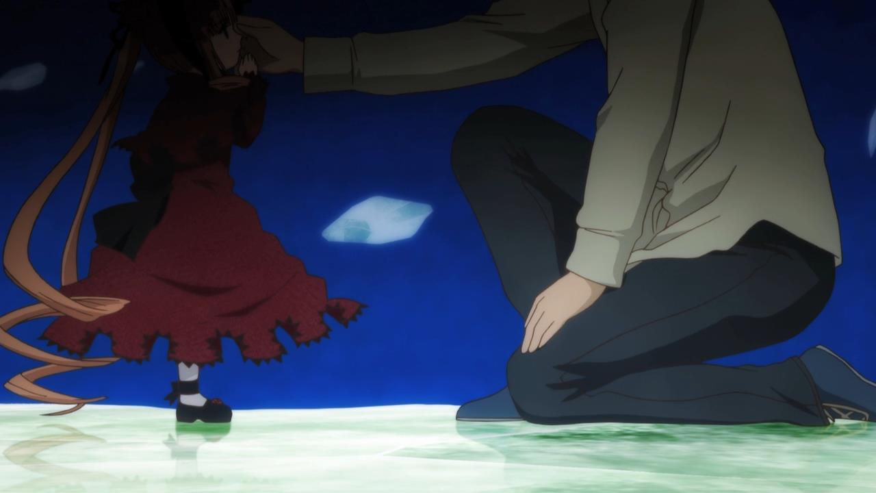 I think the biggest issue here is that there’s only one major dramatic conflict, and it’s handled within the first five minutes. Shinku’s ‘death’ could have been a pretty tense way to run out the story here, but since Kirakishou has already been defeated, Wound Jun just shows up out of nowhere with her real body and she’s restored, just like that. It’s a pretty lame way to end the persistent ‘Shinku has a set lifespan’ thread that they’ve tried to keep rolling throughout the show. It’s another example of poor pacing, which has been a major issue all along in this story.