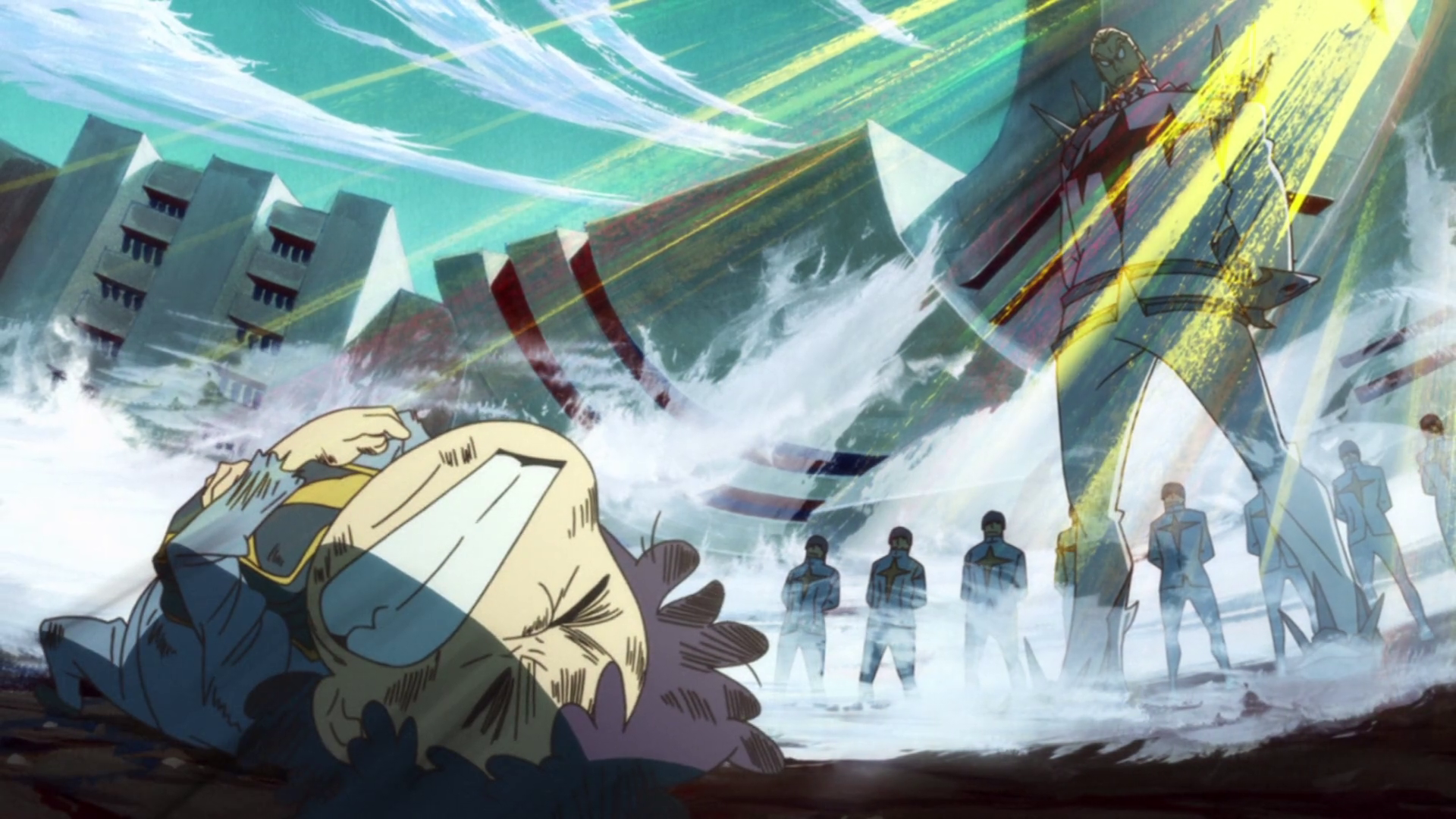 Visually it’s everything I wished anime did more, a furious, scratchy blend of styles and shapes, never afraid to twist and turn its characters for maximum visual impact or comic value paired with inspired direction that maximises impact and minimises budgetary constraints, it’s simply the most wonderful looking show in years. And hey, there’s even the surreal sound of sexy uniform Momotaros to drink in. Incredibly excited to see where this one goes.